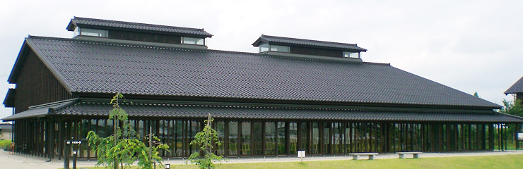 情報館は砺波地方の伝統的な家屋様式のひとつである「マエナガレ」をイメージした建物です。施設利用の受付窓口や学習・写真パネルなど散居村を楽しく学べる施設です。