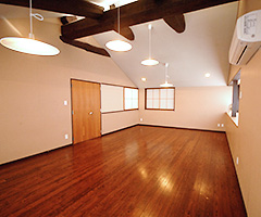 交流館の2階には20畳の広いフローリング張りの部屋があり、ヨガなどの教室にご利用いただけます。